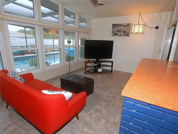 Not your typical cookie cutter home here! This California contemporary pool home sits on an oversized .41 acre double lot in a NON flood zone. It features a bright, open, split bedroom plan with volume ceilings and lots of natural light. The floor plan offers an abundance of indoor & outdoor living spaces and includes: large formal living room w/wall to wall windows, centrally located galley kitchen, casual dining area, a master suite w/sliders to the lanai, a master bath with walk-in closet, 2 additional large bedrooms w/Jack & Jill bath, a windowed Florida room, PLUS an oversized 2-car garage w/double garage doors & 1/2 bath. The outside greets you with a refreshing screened pool, covered lanai w/bar, plus an open patio w/firepit - BBQ area & hot tub. Recent upgrades include: 26 double paned windows, window shades, front storm door, rear & garage entry doors, master bedroom sliders, ceramic tile flooring, bath fixtures - toilets & custom tiled showers, garage door openers, pebble sheen pool finish, screened enclosure, PVC pool fencing, hurricane rated storage shed, chain link fence on perimeter w/double gates & more. Home is ideally located in a sought after neighborhood just a short walk from the Community & Fine Arts Centers, and a short drive from the Dunedin Causeway, Westfield Mall, and the Historic Downtown District with it's unique shops, top rated restaurants & countless activities. This is a MUST SEE for buyers seeking a unique, move-in ready home with the eclectic Dunedin lifestyle it conveys.