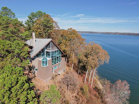Huge Price Reduction! Renowned architect Coleman Coker's 3200 sq ft cliff dwelling blends modernism atop a 150-ft bluff offering stunning views of Pickwick Lake. Constructed of glass, steel, & brick, featuring a 2-story wall of windows on the main level with panoramic views. Interior includes 3 primary suites, loft/study, spacious den/great room, & beautiful kitchen full of stainless & quartz. Large outdoor area for entertaining. Gated community w/clubhouse, golfing & covered slip in the marina. Selling partially furnished! Motivated Seller!!