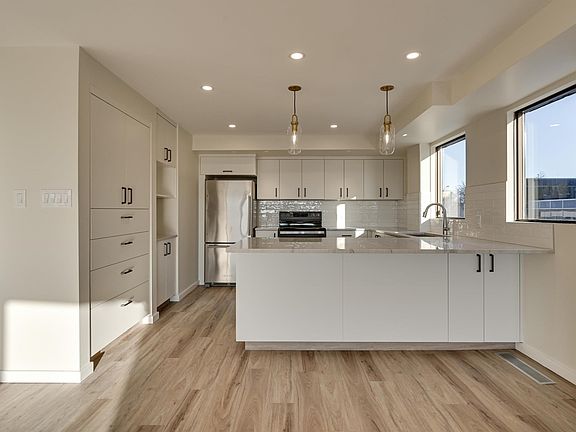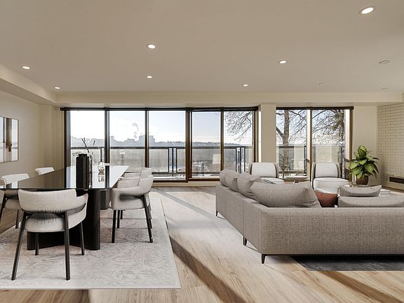 River Valley & City Views! 1,371 Sq.Ft. Private Full-Floor Condo. Enjoy stunning views from this beautifully renovated condo in River Cliff Place, an exclusive 5-unit building on the Promenade. Occupying the entire main floor with direct elevator access, this bright, open-concept home features floor-to-ceiling south-facing windows, luxury vinyl plank flooring, a gas fireplace, and kitchen with tons of cabinetry, granite counters, peninsula with pendant lighting, and stainless steel appliances. The spacious primary suite includes a custom walk-in closet and ensuite with double sinks and deep tub. Versatile den could serve as a second bedroom. Includes in-suite laundry, guest bath, attached parking, and storage locker. Steps from trails, dining, galleries, and the Brewery & Ice Districts—urban living at its finest!