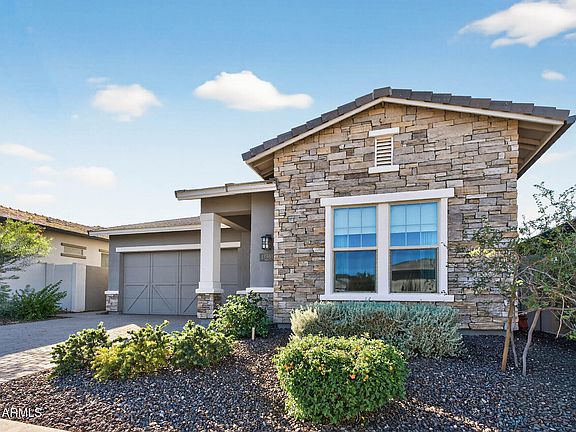 Find yourself in this beautiful 3 bed/2 bath golf villa, located in the gated Blackstone community of Vistancia. Nestled along the 10th hole fairway of the Blackstone Country Club golf course, this home has over $100k in enhancements & upgrades including 12' ceilings at the great room, owner's retreat and patio. Home may either be configured as a 3 bedroom or 2 beds plus a flex room. Owner's bath includes a double vanity, marble flooring, extended tile 10' supershower, & custom designed closet. Kitchen features herringbone pattern backsplash, large quartz island, and accent lighting. Take in the bright and airy great room with custom accent wall in the dining area, soaring windows and 4 panel sliding glass door. Enjoy your evenings entertaining on the custom back patio overlooking the golf course with travertine pavers, built-in gas bbq and low maintenance landscaping. Whole house sound insulation and whole house H20 Concepts water filtration, motorized roller shades & drapes, designer lighting and ceiling fans complete this sensational home. Inquire at the Blackstone Country Club for information on golf and social membership availability.