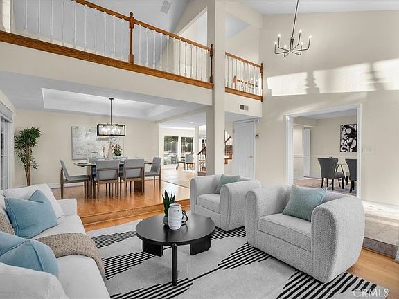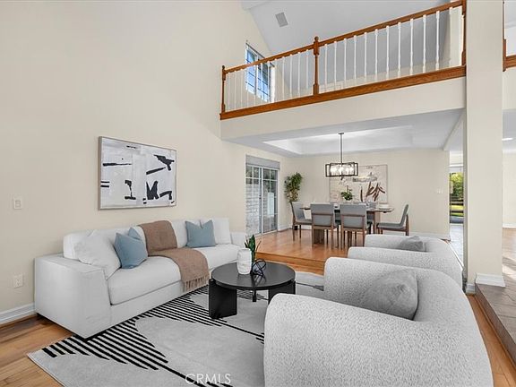 This stunning 4 bedroom + office, 3 bathroom home in Granada Hills offers nearly 3,000 square feet of living space, blending original charm with tasteful upgrades. As you enter, you're welcomed by a cozy family room with a fireplace on the left and a spacious office with double doors on the right. The lower level features a formal dining room, a kitchen with freshly painted cabinets, and ample natural light from the surrounding windows. A sliding door leads out to the expansive backyard, perfect for entertaining. There's also a second dining area, a comfortable living room with a second fireplace, and a full bathroom. A dedicated laundry room with side-by-side hookups offers direct access to the attached 2-car garage. Upstairs, you'll find newly installed carpets, a primary suite with a fireplace, an en-suite bathroom with dual sinks, a separate tub and shower, and a large walk-in closet. Just outside the primary suite, a bonus loft area offers flexibility as a lounge or office space. Down the hall are three generously sized bedrooms and another full bathroom. The oversized backyard features a covered pergola, a relaxing spa-like pool, and easy-to-maintain turf throughout. Situated on a 0.43-acre lot in a gorgeous neighborhood, this home is conveniently located near freeways, dining, and more, making it the perfect place to call home.