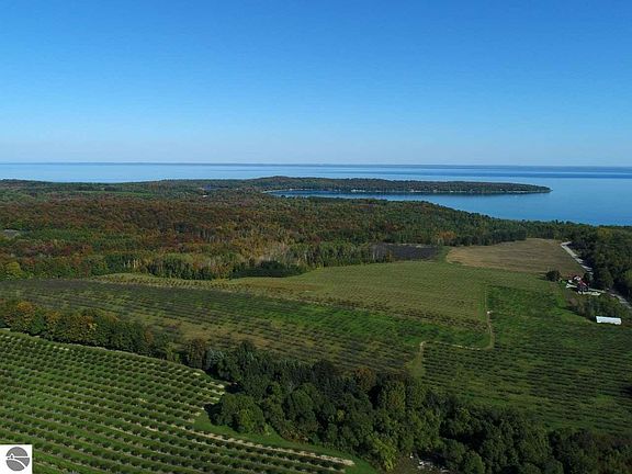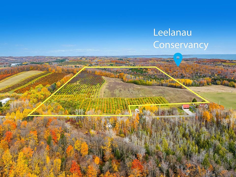 76 ACRE OMENA PARCEL, BAY VIEWS, ACTIVE ORCHARD, ASSURED PRIVACY. This is a chance you won't get again. Acquire a premium agricultural parcel in the rolling high country above Omena, featuring beautiful Grand Traverse Bay views from multiple locations. This 76-acre parcel maintains Leelanau's farming culture and offers the potential continuation of the agricultural tax exemption. The farm includes about 25 acres of producing orchard: 17 acres of Montmorency tart cherries and 7.7 acres of Empire/Supermac apples. 15 acres are ripe for expansion. A local grower professionally maintains the orchard, ensuring agricultural continuity for inexperienced owners. Value and privacy are assured: The property adjoins the Leelanau Conservancy’s 84-acre protected parcel to the east, ensuring your neighboring landscape remains permanently unspoiled and development-free. A diverse landscape awaits, including acres of open fields, mature woods sloping to a creek, and an existing 6-inch well. The ideal setting for a private agricultural estate.
