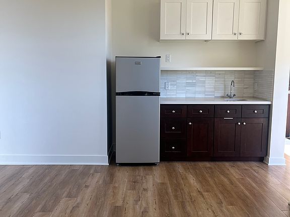 Kitchenette with refrigeratorLarge walk-in closetHigh ceilingsBbq grillHardwood floors