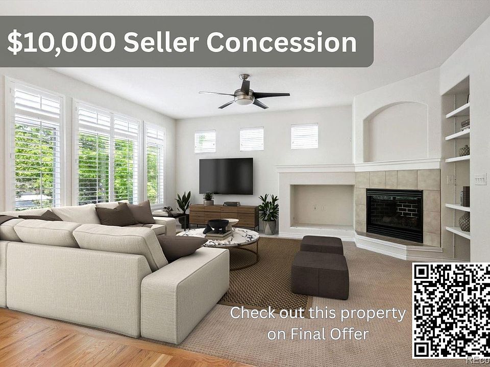 Seller is offering $10,000 in concessions! Charming low maintenance patio home that boasts hardwood floors and new carpet throughout. This gorgeous home features an excellent open floorplan with a great finished basement, and a large private deck. Step inside and experience a new lifestyle in Cottonwood Grove. The kitchen includes a newer refrigerator and dishwasher plus gas oven and elegant cherry cabinets, granite countertops and loads of cabinet space with 42 inch upper cabinets. The stunning living room or office is a great place to work or sit back and relax. The family room features a fireplace and built in shelving. You will also appreciate the tranquility of your private back deck that is the perfect place to unwind or entertain. Upstairs you will find an elegant owners suite with a retreat that includes a double sided gas fireplace plus a 5-piece bath and spacious walk-in closet. There is also another bedroom and full bathroom plus the convenience of a large upstairs laundry room. Head down to the finished basement with tall ceilings and a great recreation room, guest bedroom, and full bathroom plus tons of storage. The finished 2 car garage has a coated floor plus good storage and cabinets that are included. Tucked away at the end of a cul-de-sac in a peaceful gated community, across the street from Cherry Creek State Park. Enjoy the advantage of top tier Cherry Creek Schools in a wonderful DTC location. Admire the ease of walking or biking through the abundance of trails or avail yourself of the many Community amenities including pool, clubhouse, volleyball and tennis courts. There are plenty of great restaurants, shopping, and concert venues close by as well. This exceptional home won't last. Come see and make it yours before it's gone!
