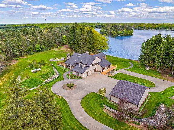 Those that know Big Lake treasure it for its depth and clean clear water. Big Lake is a full recreational lake with good fishing. Located just a short drive to Gaylord, skiing and the golf scene. This spacious home is located on a private quiet cove with a sandy beach. The swimming area is peaceful without boat traffic; paddle boarders will love it. The property includes nearly 6.5 acres and 320' of lake frontage. The grounds are beautiful with landscaping  and manicured  lawns. covered decks, entertaining open decks and private decks surround the home. Inside the home you'll find space for everyone, including 6 bedrooms, 7 baths and kitchens on both the main floor and the lower walkout. There are built in shelves and cabinets throughout, a grand dining room all with vaulted ceilings, many with knotty pine. The 3 car attached garage is sure to please as well as the 30x40 overflow building with two 8' doors and a 12' door. The driving and parking surfaces are cement.