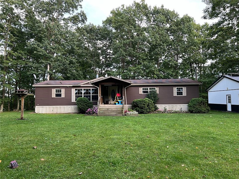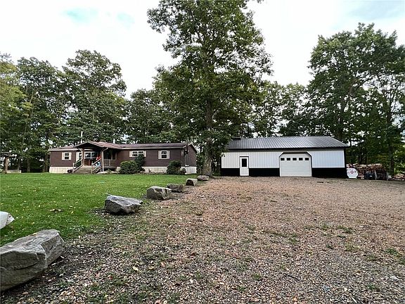 Enjoy peaceful and private one-floor country living in this beautiful farmstead. Situated on a mostly level 5-acre lot at the end of a private driveway atop a rolling hill, this home features three bedrooms, spacious rooms, vaulted ceilings, an open floor plan, two full baths, and amazing views of the countryside. Plenty of natural light in each room via large windows and skylights. The living room has a beautiful stone fireplace. The master suite has a walk-in closet, and an en suite bath with a double sink vanity, garden tub and separate shower. The eat-in kitchen has a large center island, and plenty of cabinet and counterspace. On the right side of the house sits a 30x32 garage, and is equipped with electric, heat, water, and it's own generator. A 28x30 4-stall horse barn sits to the left of the house and is equipped with electric and water. Truly an EXCEPTINAL FIND!