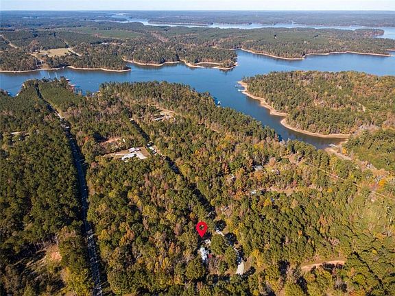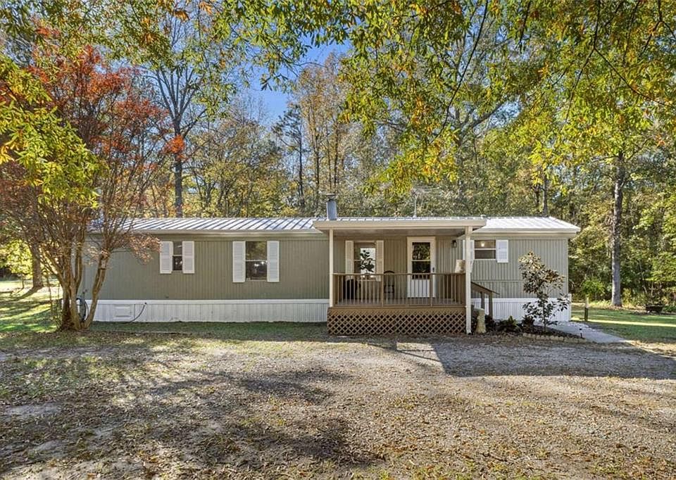 ABSOLUTELY INCREDIBLE PROPERTY WITH LAKE ACCESS! This beautifully remodeled 2-bedroom, 1-bath, 910 sq. ft. home has been completely remodeled from top to bottom and sits on one of the most picturesque 2.20-acre parcels you'll find. The land is pristine and mostly level, with mature trees, gorgeous landscaping, and producing muscadine grapevines. There is plenty of space to build your dream home here while enjoying the comfort and luxury of this stunning remodel! Everything has been freshly painted inside and out, with matching metal roofs on all structures and a brand-new front porch. Step inside to discover new Tigerwood LVP flooring throughout, a designer kitchen featuring high-end stainless-steel appliances, Carrera Quartz countertops, farmhouse sink, solid wood soft-close cabinetry, and brushed brass hardware. A crystal chandelier, exposed wood beam, and authentic stone fireplace create a warm, elegant atmosphere filled with natural light. Designer lighting and premium ceiling fans with remotes and timers enhance both comfort and style. The bathroom is a showstopper, featuring designer wallpaper, a new vanity with extra storage, a backlit defrosting hotel mirror with multiple light settings, a walk-in shower, and a programmable towel warmer. New trim, ceiling, and flooring details complete the look. Two rear porches overlook the scenic, park-like backyard. Perfect for relaxing or entertaining. The property also includes a covered carport, a carpenter's shed with electric, and a large shed less than a year old, ideal for a workshop. A drive-through driveway makes it easy to pull a boat, RV, or trailer. Enjoy lake access and a boat ramp less than a mile away, plus the convenience of shopping and dining just 10 minutes away. Additional highlights include no HOA fees, weekly garbage pickup, low property taxes, and available high-speed internet. Recent upgrades include new wiring, plumbing, skirting, landscaping, and a linked smoke detector system for added safety. The property also comes with a septic certificate, and the private well that provides great-tasting water. Clean, pristine, and move-in ready. This is an exceptional investment property, getaway retreat, or full-time living opportunity offering lake access, space to grow, and a peaceful, private setting!