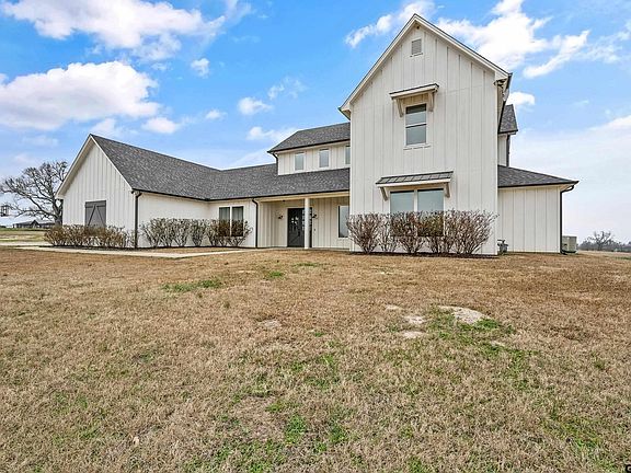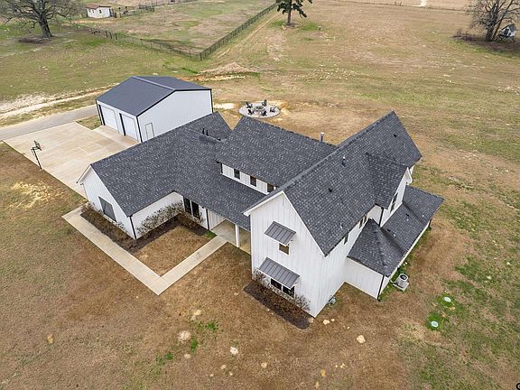 Stunning 4-Bedroom, 3.5 Bath Home on 5 Acres in Bullard ISD with 3 Car Attached Garage, Detached Shop, 2 Master Bedrooms, Dedicated Office and Media Room. Welcome to your dream home in the heart of East Texas! Nestled on 5 picturesque acres in the highly acclaimed Bullard ISD, this stunning two-story home offers the perfect blend of luxury, space, and tranquility—all within a short drive to Tyler and beautiful Lake Palestine. Designed for functionality and entertaining, this home features an open floor plan with floor-to-ceiling windows that fill the space with natural light and showcase breathtaking views of the East Texas countryside. The dream kitchen is a chef’s paradise, boasting an oversized island, quartz countertops, double ovens, and two dishwashers—perfect for hosting gatherings or making weeknight dinners a breeze. A mud area with a built-in desk helps keep personal agendas organized. The primary master suite is located downstairs, featuring a large walk-in closet with custom built-insand a spa-like ensuite. The oversized laundry room, accessible through the master closet and built in laundry chute add to the home’s thoughtful design. The dedicated office is just to the left of the master, complete with french doors. Upstairs, a junior master bedroom with its own ensuite, plus two additional bedrooms connected by a Jack-and-Jill bathroom, provide ample space for a growing family or guests. The media room is the ultimate retreat for movie nights or entertaining. Step outside to the covered back patio, complete with a mounted TV, the ideal space for enjoying football season, family dinners, or relaxing with friends. The property also includes a large detached shop with double bay doors, perfect for storing boats, jet skis, ATVs, or creating the ultimate workspace. This home is built for efficiency with foam insulation, two tankless water heaters, and other energy-saving features. The 3-car garage adds even more convenience to this exceptional property. C