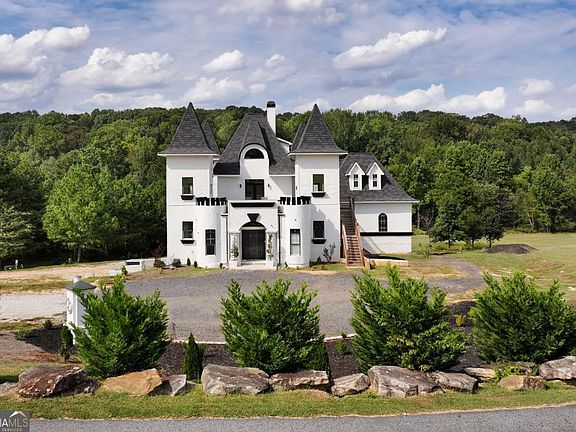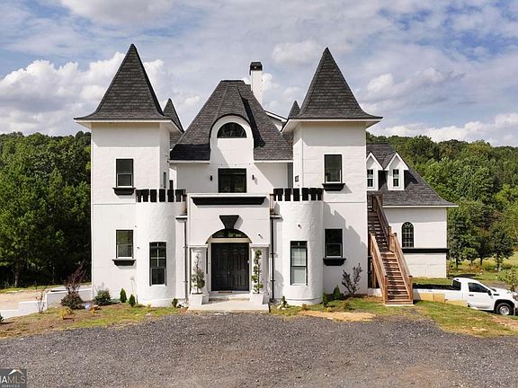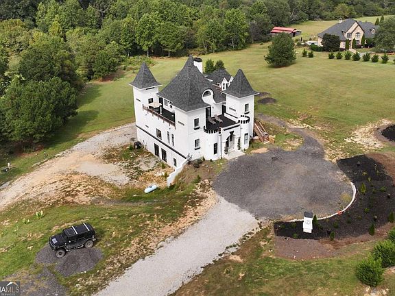 Exciting new progress is being made on this unique Castle "De Kennedy"! Features a huge Owner's Suite, and an abundant flex space to be finished out to buyer's specifications. 2 Upper Levels offers three bedrooms and a game room, all with baths and access to balconies. The transitional areas are still in progress. The home is constructed with ICF concrete reinforced with rebar, making it sound and storm proof, with a high level of construction throughout. The design allows for up to 2 large kitchens and includes a massive unfinished basement that could serve as an entire separate level with additional bedrooms, kitchen, and living areas. Set on 7 beautiful acres with a winding river in the backyard, there is also potential to construct a second smaller home on the property. With many outside balconies and rooftop areas for outdoor enjoyment, this property offers endless possibilities-perfect for a VRBO, event venue, or even a winery. Its location is highly convenient to Chateau Elan and surrounded by large estate homes. Currently, the home is being used as a movie set for the film "Late Night at the Mafia", creating great income for the seller. More pictures to come as completion continues!