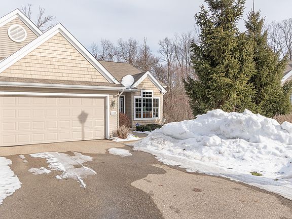 Superb Quail Meadows condo in landscaped Cul-De-Sac! Spacious main level living with MSTR BDRM w/upgraded MSTR BT en suite including fully tiled shower & dressing table. Main level laundry. Gorgeous views of woods from main level sun-room and outdoor deck. Superb kitchen with cherry cabinetry and lovely counters with appliances included. Lovely wainscoting in office/den. Main floor half bath for guests. Finished walk out lower level with 2nd bedroom facing woods, huge open family/recreation area, a third bedroom, and copious storage area. Nice combination