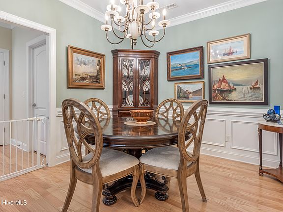 Nothing spared with wood flooring, formal dining room wainscoting, crown molding throughout, built-in bookshelves, up-grade cabinets and countertops. Lots of natural light throughout for a bright, open and split floorplan.
