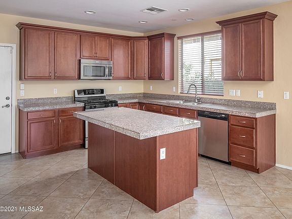 * Located Oro Valley's Somerset Canyon in Rancho Vistoso this spacious 3,261sf two-story 5BR/3BA home has it all. Upon entering the home you'll find generous living space w/flexible layout w/beautiful diagonally set 20'' tile, soaring ceilings & plenty of natural light. 1st floor features a bedroom, full bathroom, formal living & dining rooms & family room off kitchen. Large center island in kitchen, granite counters, cherry cabinets, stainless appliances & two pantries. Sliding glass doors lead to incredible backyard w/covered patio, extensive paver bricks, large built-in BBQ+gas burner, custom raised fire pit, Banco seating bench, low-care landscaping accented by mature citrus & shade trees.