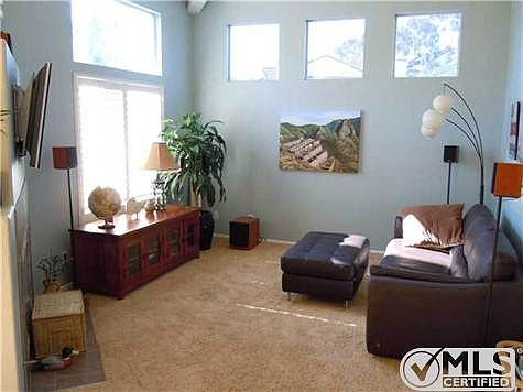 Vaulted ceiling open floorplan. Light and bright, clean and cozy. Hardwood floors. The third bedroom is a loft and can be converted to a office. Balcony off dining and spacious master bedroom. 2 car garage. Community pool, lots of vistor parking. Close to shopping and dining. Easy access to I-15 & I-56. Walk to Los Penasquitos Canyon Preserve and trails. HOA fee includes water & trash. Brokered And Advertised By: MPG Properties, Inc. Listing Agent: Joe MacDonald
