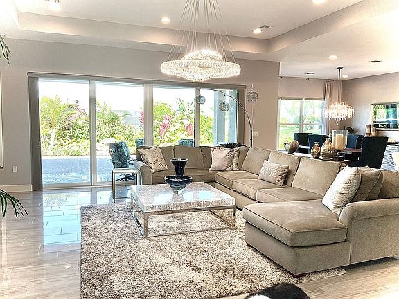 Exceptional opportunity to live in Valencia Cay, one of Port St. Lucie’s premiere Active Adult communities with resort style amenities. Why wait over two years for this desirable Bellagio model featuring over $200K in upgrades on a desirable large corner lot. All upgraded cabinets, appliances and tile. The entire house has added recessed lighting and designer lighting. Custom closets, Venetian plaster decorators walls, custom built in fireplace accent wall are only a few of the desirable upgrades to enjoy. The lush landscaping provides a private tropical paradise, including an outdoor kitchen and waterfall. The extended three car garage has epoxy floors with plenty of room for your toys. Riverland provides exceptionally active lifestyle with special event entertainment, on site restaurant, indoor and outdoor heated pools, premier tennis and Pickelball facility with on site pros. State of the art fitness center and additional cultural center with creative classes and hobbies. Enjoy a peaceful and relaxing Paseo Greenway while you walk, bike or ride in your own personal golf cart connecting all Riverland Communities and security of a 24 hour manned gate. Optional opportunity to purchase move in ready, just bring your clothes, for an additional cost. Why wait over a year for furnishings, most furniture is less than two years old.