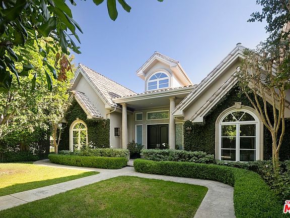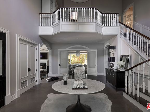 Located in the esteemed ultra-private Lockridge Estates of Fryman Canyon, this double-gated, 6-bed, 9-bath transitional masterpiece commands sophistication and offers unparalleled luxury living. Situated on over 1.5 acres of meticulously manicured grounds, the property offers expansive serene environs coupled with its ideal proximity to Studio City and the Westside. Stepping into the grand foyer, you'll be greeted by a stately staircase framed by soaring 20-foot ceilings adorned with detailed millwork throughout. Off the entryway, find a regal office space boasting custom cabinetry and exquisite wainscotting. On the opposite side of the foyer discover the formal living room graced with vaulted ceilings allowing for an abundance of natural light to fill the space. Flowing directly through to the rear living, you'll encounter the inviting, light-filled space adorned with an elegant bar along with an array of double doors, effortlessly connecting indoor and outdoor living. Framed by decant millwork, the formal dining area exudes an air of refined sophistication offering an abundance of space ideal for hosting. The butler's pantry, connecting the dining space to the kitchen, serves as a functional and stylish intermediary, complete with custom cabinetry, ample storage, and elegant finishes, ensuring seamless service for both formal occasions and everyday dining experiences. The gourmet kitchen with its oversized island sanctions as an ideal gathering spot to host friends and family. Complete with premium stainless-steel appliances, the space is outfitted to elevate any culinary experience. For more casual dining, enjoy the eat-in breakfast nook graced by the outdoor foliage and incredible natural light. Ascend to the second level to find the expansive luxe primary suite, accompanied by three additional spacious bedrooms and an inviting, elegantly designed home theatre space. Step through the grand double doors at the apex of the main staircase and enter the primary suite, where you'll find an exceptionally spacious layout. An elegant sitting area, dual primary bathrooms, each featuring their own adjoining closet space, along with multiple terraces, collectively create a luxurious environment ideal for relaxation. Outdoors, discover the notably large flat yard complete with manicured grounds, a captivating infinity pool, a putting green, numerous outdoor seating areas, and a charming rear guesthouse currently reposed as a fitness space.