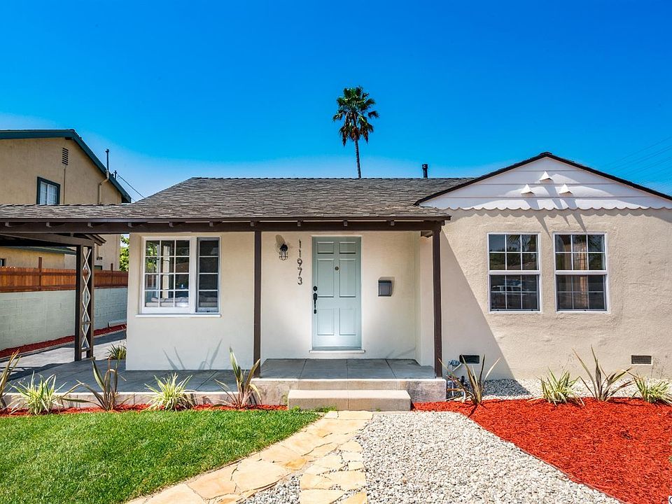 Beautifully Remodeled 2 Bedroom and 1 Bath home with a LARGE Garage with BONUS ROOM, Located in Sun Valley. HUGE Yard, Open Floor Plan, Spacious Living Room with New Gleaming Hard Flooring, Designer lights and fresh paint throughout. New Central AC and Heat. Updated kitchen complete with quartz countertops, wood look tile floors, elegant tile backsplash and new Frigidaire appliances. Bedrooms offer plenty of closet space, new floors, paint and light fixtures. Remodeled Bathroom with a vanity, new chrome faucets and gorgeous sharp modern floors and shower tile. Detached 2 -Car Garage with new doors. Bonus room attached to garage-Perfect for an office or studio space. Entertain in style with the large front and back yard with drought tolerant plants, new landscaping with sprinkler system, vegetable garden boxes; GROW your own HERBS and veggies. There are so many features that make this unique residence a true gem! Welcome home!!