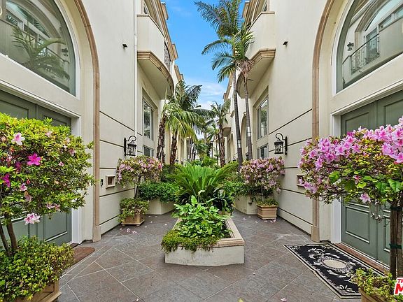 PREMIER FRONT-FACING CORNER RESIDENCE IN BRENTWOOD'S MAYFIELD GARDENS. Discover Brentwood living at its best in Mayfield Gardens, an intimate Mediterranean-inspired community of just eight homes behind a private gated entry. This rare, front-facing corner townhome is the largest and best unit in the complex, offering expansive interiors and abundant natural light throughout the day. Enter through a lush courtyard with mature landscaping and a tranquil fountain that sets the tone for refined living. Inside, soaring ceilings, polished marble floors, and a grand fireplace anchor the formal living room, which flows seamlessly into a dining area ideal for entertaining or relaxed evenings. The chef's kitchen boasts Viking and Sub-Zero appliances, marble countertops, and a large center island designed for both everyday meals and gatherings. A dedicated office with custom built-ins adds versatility, also suitable as a den, library or media room. Upstairs, the primary suite is a private retreat with a walk-in closet, dressing area, and spa-style bath with soaking tub, oversized shower, and dual vanities. Three additional en-suite bedrooms provide flexibility for family, guests, or creative space. A private rooftop deck crowns the home with sweeping city and mountain views, ideal for morning coffee, sunset gatherings, or weekend barbecues. Direct entry from a private two-car garage and an in-unit elevator ensure ease and convenience across all levels. Perfectly positioned between Montana Avenue and Wilshire Boulevard, this light-filled Brentwood residence is moments from boutiques, cafes, and the iconic Country Mart. This is a rare chance to own the largest, most desirable residence in a highly sought-after gated community. Schedule your private showing today.