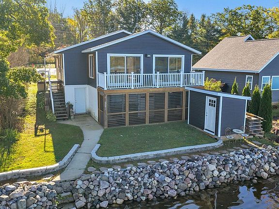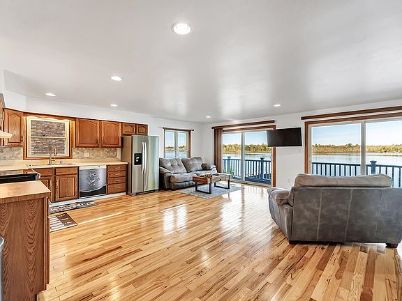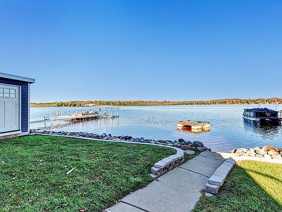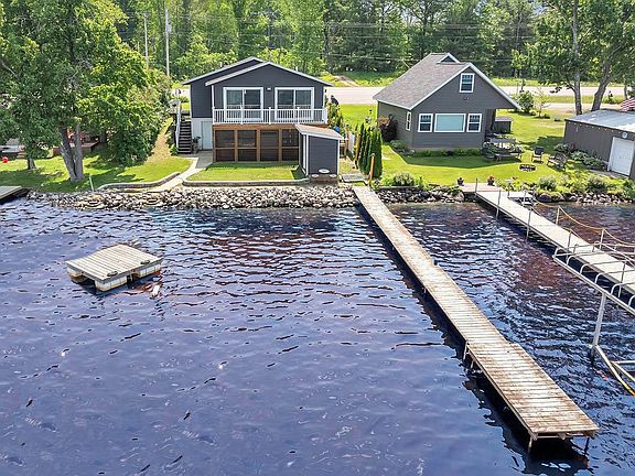 Renovated Walk-Out Ranch on Full-Rec Anderson Lake! Experience spectacular lake views from this retreat or year-round residence with level frontage and private dock, sandy-bottom frontage and re-enforced shoreline. Enjoy excellent fishing, endless water recreation and direct access to a vast ATV and snowmobile trail system—right out your door! Take in the scenery from an expansive deck or unwind in the screened-in porch complete with built-in shades. This open concept home boasts stunning water views and light-filled living spaces. There are 2 main level bedrooms and a lower offering a spacious family room with dual patio doors to the screened porch and a bedroom suite featuring oversized closet bath and rainfall showerhead in the bath. Dock, appliances, washer and dryer are all included.