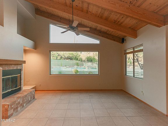 Welcome to your serene oasis! This delightful ranch-style home is perfectly situated at the base of the breathtaking Catalina Mountains, offering panoramic vistas views and a tranquil atmosphere. This home is situated on 3.3 acres in a peaceful & private custom home neighborhood, surrounded by acres of natural beauty and tranquility of the desert while being just minutes away from outdoor adventures.Upon entry you are invited to an open-concept layout with large windows that bring in natural light and showcase mountain views. Exposed soaring wood beamed ceilings add dramatic architectural detail that adds warmth and character to the spacious living areas. Spacious kitchen features granite counter tops, oak cabinets, gas stove, stainless steel appliances, ample storage.... and plenty of space for entertaining. Upon entry sits another bonus room with beautiful glass french doors that would be perfect for an office or library. Primary suite features an en-suite bathroom with dual vanities, a soaking tub, walk-in closet and a fireplace.. perfect for warm ambiance while enjoying more mountain views. Additional four well-appointed bedrooms provide ample space for family and guests and bonus room is ideal for a home gym, playroom, media room,or in-law suite complete with 4th bedroom attached and bath. Finally, this stunning backyard is an outdoor paradise! This expansive outdoor space features a sparkling pool with spa nestled under the captivating views of the mountains, expansive wood beamed porch, pool bathroom/powder-room, outdoor stone fireplace, soaring saguaros and lush surrounding desert...perfect for relaxation and gatherings. No HOA allows for RV parking, extra acreage allows for expansion. Brand new tile Roof Installed October 24, providing durability and style. And freshly painted full exterior and full interior paint, giving the home a refreshed look. Don't miss your chance to own this incredible Tucson ranch home, where luxury meets nature!