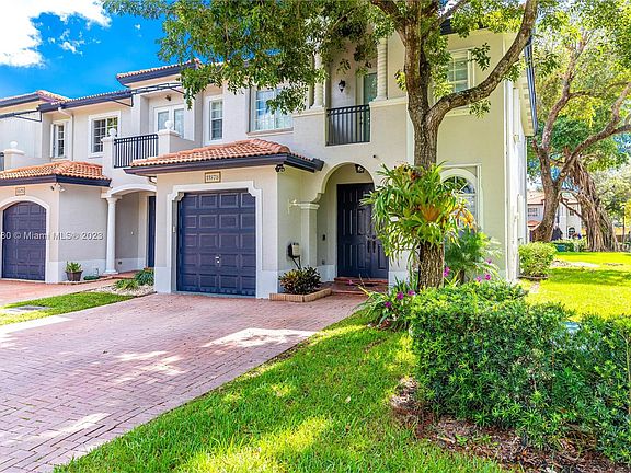 Stunning, huge, CORNER townhouse in Mystic Forest community. Convenient Kendall location, next to FL Turnpike, The Palms at Town & Country Mall, near 117TH AVE & SW 88 ST. This spacious (approx 2152 sq ft) townhome is in great condition. All 4 bedrooms are upstairs. The open living/dining room area is bright & airy. Gorgeous & modern new zebra-style shades/blinds have been installed throughout. Spacious kitchen features a breakfast area, granite countertops, lots of cupboards. New stainless steel appliances were recently installed about 8 months ago. Family room features a built-in bar w/sink. Patio is ready for family gatherings & has a comfy awning for rain protection & shade. Accordion shutters throughout exterior of home. Amenities include a community pool & playground. Newly painted.