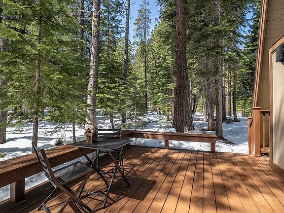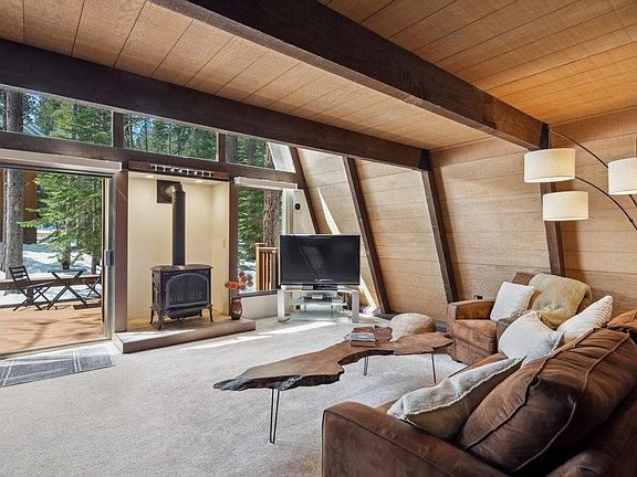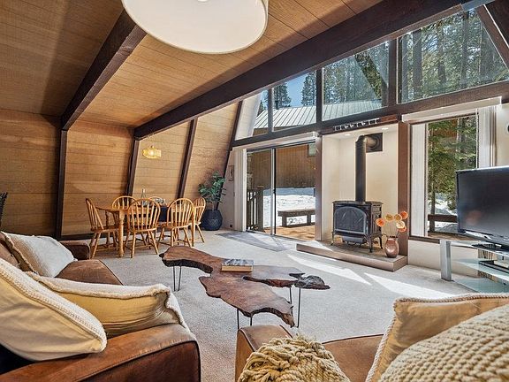 Charming Gambrel-style cabin nestled in Truckee’s desirable Tahoe Donner neighborhood. This mountain retreat strikes the perfect balance of rustic charm, comfort, and convenience. Set on a level 0.34-acre parcel at lower elevation and backing to greenbelt, the property offers a peaceful setting and easy year-round access. Inside, you’ll find 2 bedrooms, 2 bathrooms, and a cozy loft—all centered around an open living area with soaring ceilings and a gas burning stove that invites you to relax and unwind. The warm wood interior and exposed beam ceilings create a welcoming, alpine-inspired atmosphere. An airlock entry adds a practical touch for snowy days, and the utility room with washer and dryer hookups provides extra convenience for mountain living. Step outside to a spacious deck with built-in bench seating—perfect for soaking in the peaceful, forested surroundings. Homeowners here enjoy an incredible lineup of amenities—Trout Creek fitness center and pools, tennis and pickleball courts, a championship golf course, downhill and cross-country ski areas, The Lodge Restaurant, Pizza on the Hill, plus exclusive access to a private beach and boat launch at Donner Lake. Just minutes from world-class ski resorts, this cabin is your gateway to the ultimate year-round mountain lifestyle.