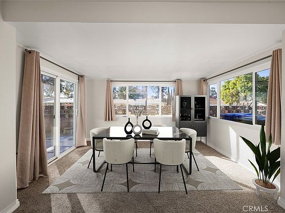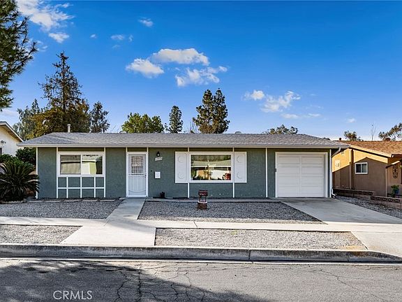 Single story, turnkey home with an attached garage in a quiet Yucaipa 55+ community. Located in Sun Park II, this charming home is ready for you to move in. Enter into a spacious living room which opens to a cozy family room and adjoining dining space. Carpet throughout is brand new. The well appointed kitchen features lots of storage space, a newer stainless steel refrigerator, and durable granite countertops. Down the hallway you'll find a 3/4 bath featuring a convenient walk-in shower with a bench seat built in. Two equally generous bedrooms include sliding closets, with additional storage in the hallway closet and cabinets. The laundry room features a front loading washer and dryer. There are dual pane windows throughout, and central heat and air. A quaint low maintenance back yard opens up to the picturesque green walkable space behind the home. The HOA also covers access to the pool and BBQ area, recreation room, and many activities offered for residents. Ideal location - less than a mile to Stater Brother's Super Market, Ace Hardware, the library, and local dining and shopping.