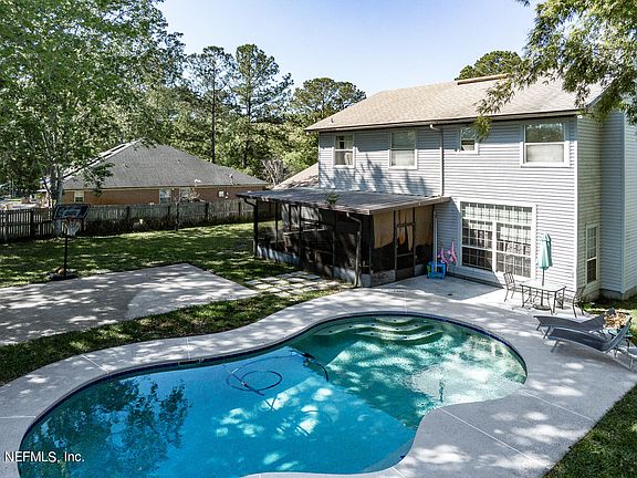 BEST WAY TO COOL OFF ON A HOT SUMMER DAY IS IN YOUR OWN POOL! Come see this lovely 4 bedrooms - 2.5 bath home in the desirable Stonebridge neighborhood in Mandarin. The home is on a quiet cul de sac. Spacious floor plan. FRESHLY PAINTED interior & new carpet. Enjoy family & friends in the large back yard. Splash around in the pool or unwind on the screened patio with Hot Tub. The Family room w/ wood-burning fireplace opens to the Kitchen & Living Room. Separate Dining Room - could be an office. Large Laundry. All bedrooms upstairs. The Owners Bath has a separate tub and shower. Add your own personal design touches and make this home your own. Low maintenance brick front with vinyl siding. Roof is 2014. HVAC 2022 & 2014. No HOA or CDD fees. Transferable termite bond.