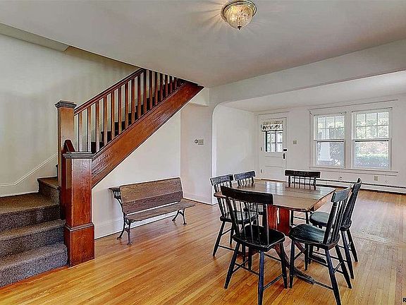 Super charming home with wood floors, all new paint (in & out); newer 200 amp electric service; 40X18 garage (front)/workshop (rear) with electric; stainless chimney liner 2013; 2nd floor - wood under carpet; big front covered porch; big back yard; nice kitchen with ample cabinets. New custom, triple pane energy efficient windows (2019); New oil tank (2018) & new furnace (2019); Exterior woodwork repainted (2020); Trees & shrubs maintenance by arborist (2021)