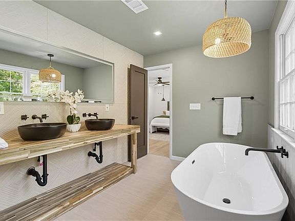 Back on the market! Nestled in the highly sought-after Windsor Farms community, this beautifully updated 4-bedroom, 3-bathroom ranch combines timeless charm with modern comfort. Featuring a brand-new roof, this home is just minutes from historic Marietta Square, top-rated schools, shopping, dining, and major highways—offering unmatched convenience. Inside, you’ll love the stylish updates throughout, including a spa-like bathroom with a freestanding tub, dual vessel sinks, and designer finishes. The open and airy bedrooms feature abundant natural light, fresh paint, and new flooring, creating a warm and inviting atmosphere. The finished basement adds flexibility with two additional bedrooms and a full bath—perfect for guests, a home office, or recreation space. Enjoy year-round relaxation in the sunroom, and take advantage of the detached garage for extra storage or parking. This home blends modern style with endless potential in one of Marietta's most desirable neighborhoods. Don’t miss your chance—schedule a showing today!