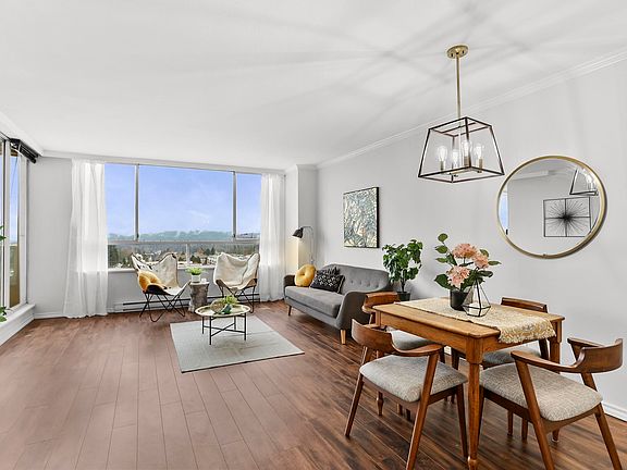 Best view in the building! Top-floor home with no one above and stunning 180° mountain views. This 1 bedroom, 1 bathroom layout feels open and spacious, featuring a huge primary suite with plenty of room for a king-sized bed, plus a private covered patio with no neighbouring units in view. Professionally painted throughout with updated fixtures, and newer flooring. Tons of parking with additional underground parking available. Central, walkable location just minutes to the West Coast Express, transit, shopping, and commuter routes.