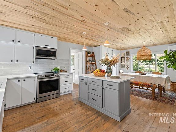 PRICE IMPROVEMENT! Discover peace, serenity, and the beauty of Idaho living at this one-of-a-kind retreat featuring two homes and over $300,000 in thoughtful upgrades. Set on a full acre surrounded by shady trees and open skies, this property offers endless possibilities for a homestead, garden, or your favorite animals. Just steps from the river and minutes from the reservoir, every day invites adventure with paddleboarding, fishing, and breathtaking views of nature. Watch deer wander through at sunrise, enjoy evenings on the deck as the sun melts into the hills, and feel a world away while being only six minutes from Horseshoe Bend and 30 minutes from Boise. The main home shines with rich hardwood floors, wood ceilings, and stunning modern kitchen and bath finishes, all appliances included. The second two bedroom home includes a full kitchen, spa style bath, laundry hookups, and a private sunset deck that captures the spirit of Idaho. A spacious shop with loft, RV carport, and whimsical playhouse complete this peaceful paradise. Once you arrive, you will never want to leave.