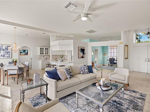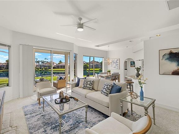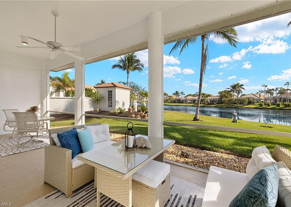 A rare opportunity to own a direct lakefront residence, ****beautifully furnished (furniture negotiable)***, with breathtaking long lake views on one of the largest lots in the community. Welcome to the highly coveted "Water’s Edge One" section of the prestigious "Water's Edge at Peppertree Pointe" marina development. This exceptional home features stunning panoramic lake views and offers the added benefit of exceptionally low HOA fees! The beautiful open floor plan features 2 bedrooms, a separate den (originally designed as a 3rd bedroom - an easy conversion to a 3rd bedroom if needed), 2 baths, a 2-car garage, and a stunning outdoor lanai overlooking the lake. This layout provides the highly desirable "Florida lifestyle" of waterfront living, with close proximity to the private marina and nearby beaches. The kitchen features beautiful countertops, stainless steel appliances, and a spacious pantry. The open living area flows effortlessly, captivating you with breathtaking lake views. The master suite provides a peaceful escape, offering a private lake view, an ensuite bathroom with a soaking tub, dual vanities, and a large walk-in closet. This home combines comfort and peace of mind, fresh exterior paint, a refreshed interior, and an abundance of natural light throughout. Roof was replaced 2013-2014 with red altusa clay by Crowther residential roofing. 5 year contractors warranty, 25 year material warranty. As part of the exclusive community of Water's Edge One, which consists of only 45 homes, this property enjoys close proximity to the south-facing community pool and tennis courts just across the street. No need for a private pool - simply step outside into your own private paradise and ENJOY! Relax overseeing the tranquil lake views, or take a 30-second walk to the community pool. AMENITIES: Additional amenities include a private marina with DIRECT GULF ACCESS, with a few boat slips currently available for lease! Adjacent to the community pool, you’ll find tennis and pickleball courts, with a second community pool also nearby. During the season, enjoy the monthly Nautical Nights at the Marina—a wonderful opportunity to meet your new neighbors! This subdivision offers an active lifestyle, with a long fishing pier planned for completion by the end of 2025, providing the perfect spot to watch stunning sunsets right from the pier. A pristine private sand beach completes the "Florida lifestyle" experience. LOCATION: Water's Edge is ideally situated off McGregor, close to the beaches, shopping, fine dining, entertainment, hospitals, and even the airport. This property is priced to sell, with consideration for any upgrades you may want to make. It is a rare opportunity to own an exceptional home at such a great price in one of Fort Myers' most sought-after communities. AN OUTSTANDING INVESTMENT — especially given the low HOA and maintenance fees!