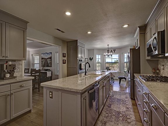 Welcome to this upscale country ranchette offering the perfect blend of elegance, comfort, and rural charm. Enter through a winding drive flanked by classic white fencing to your private 5-acre retreatfully manicured, fenced, cross-fenced, and brush-cleared with beautifully trimmed trees. A large level pad provides ideal space for parking, equipment, or future expansion. Enjoy a lifestyle of self-sufficiency with a spacious garden featuring raised planters, irrigation, and sitting areas, plus a charming chicken coop and fenced yard. The free-form pool, terraced rear yard, expansive deck, and gazebo create the ultimate outdoor oasis. Inside, the immaculate single-story home showcases a light, neutral palette and designer touches throughout. The 4-bedroom, 3-bath floor plan includes a resort-style owner's suite with a luxurious bath and attached sitting area or office. The generous kitchen and sunny breakfast nook invite family gatherings, and nearly every room enjoys peaceful views. A detached ADU with full bath offers flexibility for guests, office, or creative space. Easy access to the Ranchos trail system completes this perfect country escape.