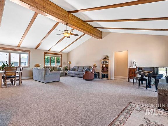Spacious & meticulously maintained home nestled on a large fenced lot. Boasting 5 beds (2 masters) & 4 baths, this property offers a perfect blend of comfort, convenience, & outdoor enjoyment. Remodeled in 2013, completed under city permit & inspection, ensures quality & compliance. Newer 98% efficient gas furnace, AC, insulated ducts & floors provide year-round comfort & minimize energy costs. All plumbing was upgraded with PEX & instant hot water to all indoor faucets. Certified woodstove w/charming hobbit wood door, installed 2021, in the family room, off the kitchen. Yard has fully automatic inground sprinklers & patio has a 220-volt outlet & natural gas outlet for BBQ. RV parking beside a 12x16 shed & attached 8x16 lean-to provides ample storage for all your needs. Property amenities include Elberta Peach trees, inground trampoline, & official-sized shuffleboard court. Hard-wired internet is available in the kitchen, beds, & basement. No CC&Rs/HOA. Great for multi-generational living!