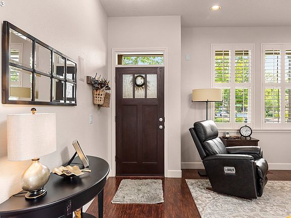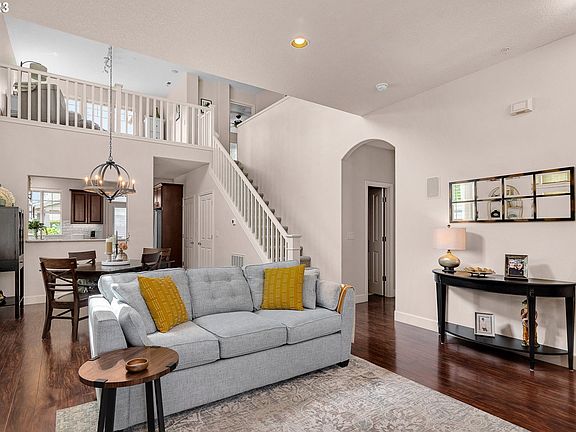 Sought after MontClair floor plan built by Arbor Homes, featuring a primary suite on main floor and soaring two level ceilings in dining room. Located on a corner lot, on one of the beautiful streets in Villebois, with established landscaping and easy access to all of the community amenities, this home has endless updates making it truly move in ready. Natural light pours into the main level open concept living and dining rooms, featuring surround sound and a gas fire place. There are updated high end stainless steel appliances, quartz counter tops, a pantry and even a second laundry hook up in the closet of the kitchen should you need all utilities on the main level. The primary suite on the main level has a walk-in closet, double sink, and walk-in shower. Upstairs there are two massive bedrooms, a spacious loft overlooking the lower level, a laundry room with cabinetry and sink, along with the second full bathroom. Updates for this home include new exterior paint, new HVAC and AC, carpet, fencing, pavers on side yard, stove & microwave, blinds and more. It's rare to find a home that has been loved and up kept in this manner, something you will feel the moment you open the front door.