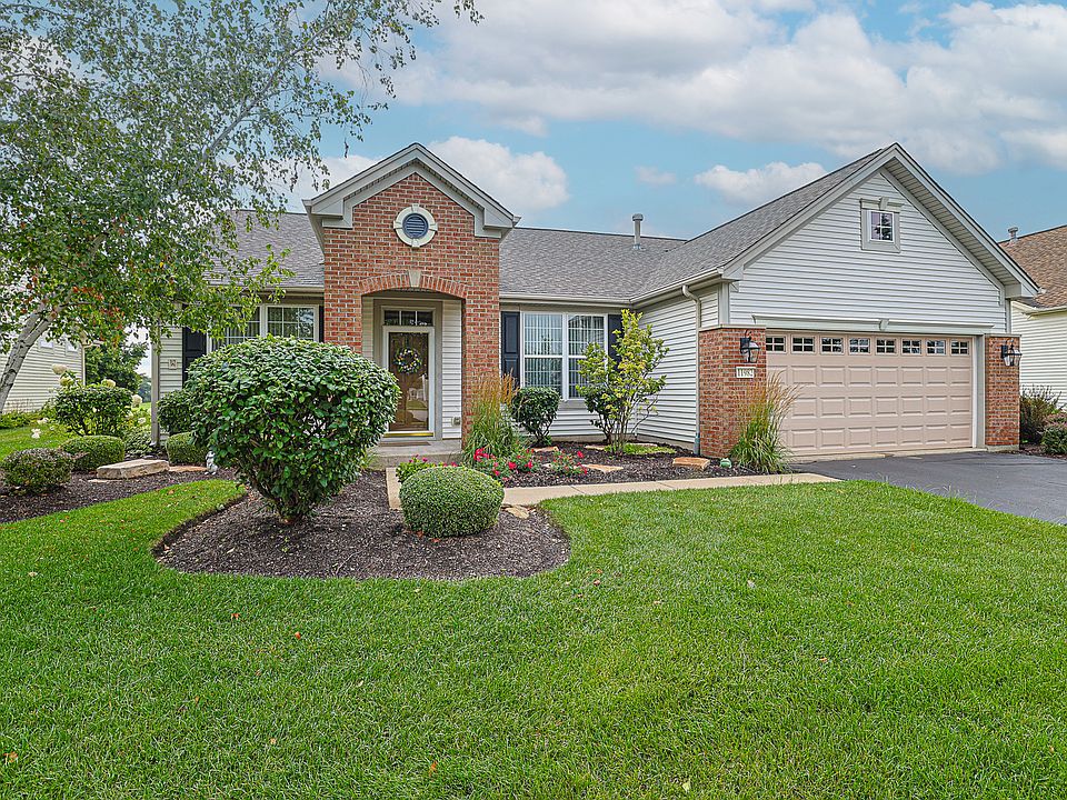 Welcome home to this beautifully maintained and extended Grand Haven model in Del Webb's Sun City! Perfectly situated backing to preserved prairie and the 4th hole of Whispering Creek Golf Course, this home offers stunning views and serene privacy. From the upgraded brick archway elevation to the bright, inviting foyer, you'll immediately notice the pride of ownership from its single owner. The spacious living and dining rooms flow into the kitchen, which features double trimmed cabinetry, under/over cabinet lighting, a large Corian breakfast bar, new skylight (2021) adding architectural charm and natural light, and an open connection to the breakfast room and family room. Step though the breakfast room door to the Victorian paver patio surrounded by mature landscaping and gorgeous prairie views. The extended primary suite impresses with the bay windows, views, a large walk-in closet and ensuite bath with soaking tub, separate shower with bench and linen closet. A second bedroom and full bath are perfect for guests. The oversized laundry room has cabinets and sink and leads to a large storage room with shelving - ideal for hobbies, an office or even a workout room. The garage is finished with epoxy flooring, an energy package for extra insulation and pull-down stairs for attic access. Recent updates include: Roof (2021), Skylight (2021), HVAC system (2023), Water heater (2024), Primary bath shower door, mirrors and window treatments, and Dishwasher (2022). All of this in Sun City's sought after 55+ community with pools, fitness centers, clubhouse, fishing ponds, tennis/pickleball courts, golf, woodworking shop, events, clubs & so much more!