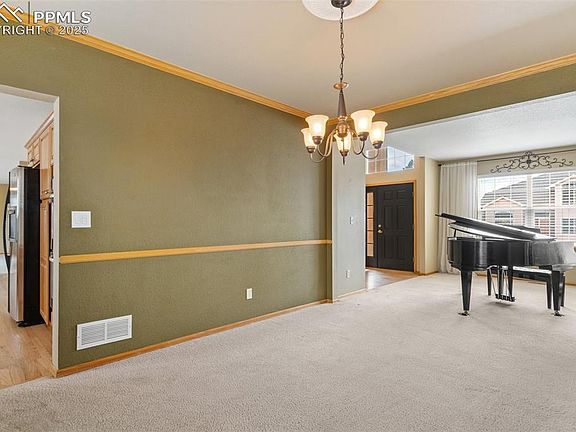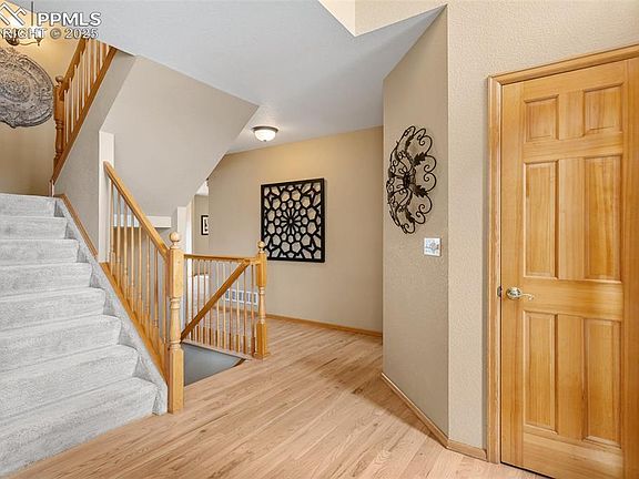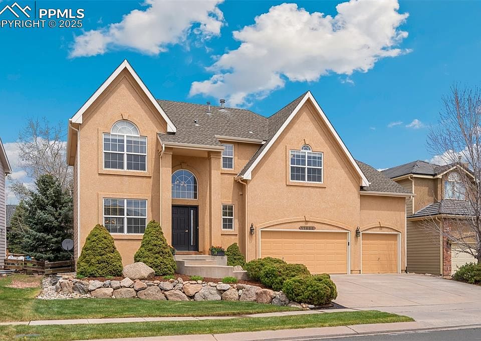 Gorgeous Acuff 5 bed, 5 Bath, 3 car garage on almost 10,000 sqft lot in coveted South Valley at Trail Ridge, Pikes Peak and front range views including USAFA and Falcon Stadium. Freshly refinished Oak Hardwood floors on the main. Enjoy relaxing evenings or early coffee with the frequent mule deer on your new oversized 21X12 wood deck. Beautiful large gourmet kitchen with stone countertops and Stainless appliances and a pantry, You'll love the oversized Master Suite with Dual Closets and 5pc bath including custom shower and spa tub. 4 bedrooms are up and each connect to a bathroom. Bedroom #2 with private bath. ALL Bedrooms have walk-in closets. Master has 2 walk-ins! Zoned Heating and Central Air. Laundry is upstairs, Bring them all over for game time or movie night in separate media room wired for surround sound. Bedroom #5 oversized with large walk-in as well. Generous, fenced, private backyard. Award winning D20 Schools, Convenient to I25, USAFA, Shopping and Entertainment including new Ford Amphitheater.