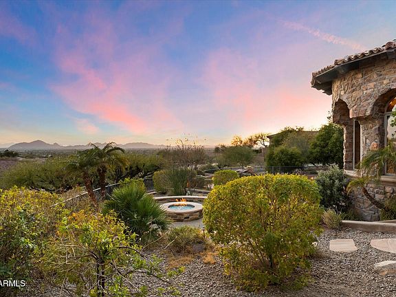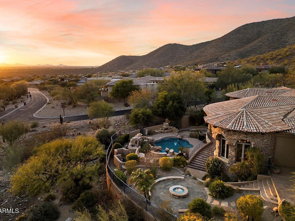 BEST VALUE within the guard-gated golf community of Ancala Country Club stands this grand-scale residence. Offering a split floor plan on an exceptional elevated corner lot capturing unobstructed sweeping city lights and Mountain Views. The primary suite is set on the main level; as a peaceful retreat, it offers breathtaking views, a spa-inspired bath with steam shower, dry sauna, and dual water closets. Expansive interiors include a theater, office, fitness room, bonus/game room, and generous guest suites finished with timeless sophistication. The lower-level walkout opens to an entertaining-style backyard featuring a pool with a waterslide, spa, fire pits, outdoor fireplace, a built-in BBQ, and misters on the upper balcony provide comfort while taking in panoramic vistas. A gated motor court and temperature-controlled 5-car garage complete this extraordinary home. Ancala Country Club offers a family-friendly atmosphere, a challenging Perry Dye golf course, and a range of social, sports, and golf memberships. A rare and truly remarkable offering.