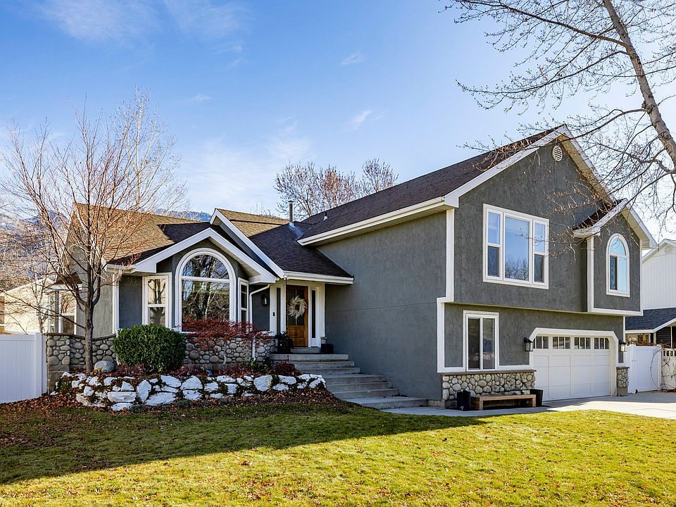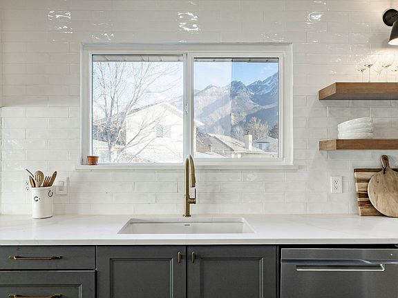 Welcome to your dream home in the serene Hidden Valley area of Sandy! This beautifully remodeled residence is nestled on a quiet street, conveniently located close to loads of shopping and dining options, as well as the nearby canyons for outdoor adventures and skiing. Step inside to discover a newly remodeled, spacious kitchen that will captivate any chef. Featuring painted cabinets, luxurious quartz countertops, a stunning tile backsplash, and brand-new stainless steel appliances. This space is perfect for entertaining. The kitchen seamlessly flows into the elegant family room, highlighted by soaring double-high ceilings and a picturesque window with breathtaking mountain views. The spacious primary suite is designed for relaxation, complete with a large en-suite bathroom for your comfort. With four additional bedrooms, there's plenty of space for family, guests, or even a home office or workout room, accommodating all your needs. The home exudes a modern, updated feel with stylish shiplap painted accents, LVP flooring, and contemporary lighting throughout. Venture outside to the backyard oasis, an entertainer's paradise featuring a Trex deck that offers gorgeous mountain views and provides shade on warm summer evenings. The included trampoline and playset make this yard perfect for families and gatherings. Additional highlights include a walkout basement, recently replaced windows, and newer furnace and AC systems for added peace of mind. Don't miss the opportunity to make this stunning home yours!