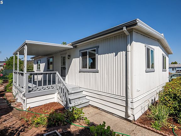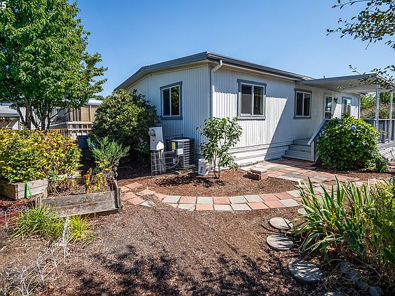 Welcome to this lovely 2-bedroom, 2-bath home located in Daneland Mobile Home Park, a quiet, well-managed 55+ community with fantastic amenities—including garbage, yard debris, and cable included in the space rent!Step inside to find brand-new carpet, fresh interior and exterior paint, and stainless steel appliances in the kitchen. There’s plenty of storage throughout, including spacious bedrooms and a walk-in shower in the primary suite. The cozy covered patio includes a storage/work area, perfect for hobbies or projects.Sitting on a beautiful corner lot, the yard is full of fruit trees—plums, apples, cherries, also raspberries, tomatoes, raised flowerbeds, and a variety of vibrant plants. It’s private, peaceful, and has plenty of parking—a true little sanctuary tucked away in a wonderful park.The community offers tons of amenities like a swimming pool, hot tub, billiards room, workout room, and amazing on-site management. Plus, it’s conveniently located near shopping and has easy freeway access.If you're looking for comfort, community, and a serene space to call home—this is it!
