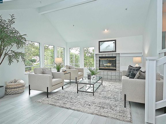 Nestled in the Martinez hills just above the downtown area is this 4 BR 3.5 BA home with over 2300 square feet of living space. Secluded and private .43 acre lot with endless possibilities. Huge kitchen/family room combination features island, high ceilings, recessed lighting and dining nook. Living room and dining area also have high ceilings, a fireplace and lots of windows making the space so light and bright. Primary suite has a fireplace, beautiful view of the hills from the windows, walk-in closet and bathroom with dual sinks. The entire interior was just painted and new flooring installed throughout the home. Two car attached garage, laundry room, central heat and air conditioning. Just minutes to the shops, restaurants, and live music venues in downtown Martinez!