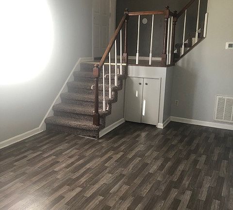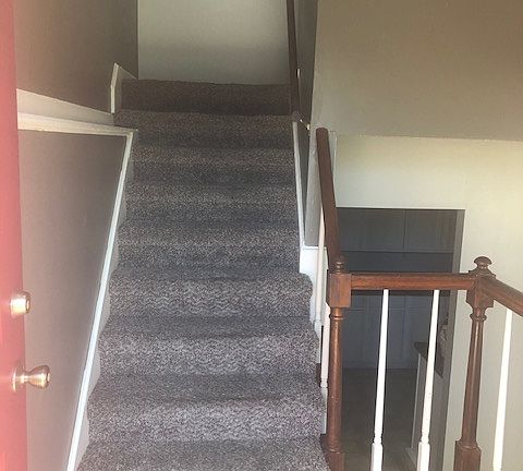 Updated duplex, located on a corner lot. This spilt foyer has a living room, kitchen and half bathroom with washer and dryer hookup on main level. Upstairs is two bedrooms and full bath. Living room has hardwood floors and kitchen/ half bath has aluminum. Upstairs and bedrooms has new carpet. Backyard with patio. Tenant responsible for maintaining yard. Tenant pays electric and water. Must be able to provide 2 months, of pay stubs. No pets. Rent is 990.00 and deposit is 990.00. Unit is available November with a one year lease. One year lease is required. Unit available . Tenant pays electric and water. Tenant must maintain yard.