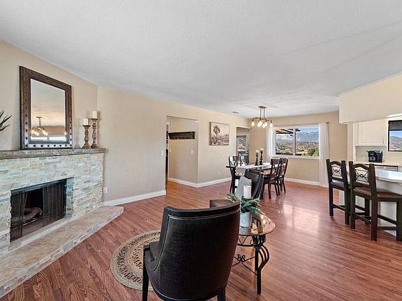 ALPINE Heights Home situated on one acre lot with ample parking. Custom double door entry with open layout and beautiful wood flooring throughout. Two woodburning fireplaces with custom rock in family room and Primary. All living space is one level with parking at the front Door with a concrete parking pad. Quartz countertops in kitchen with open seating to the dining & family room for quiet everyday meals or intimate gatherings by the fireplace. Home features large bedrooms with expansive closets and INDOOR laundry room with loads of storage. Livingroom extends to the exterior decks to entertain and enjoy a warm fire with sunset views. Expansive Primary Suite with walk-in closets, fireplace and direct access to exterior decks. Oversized finished 2-car garage with workshop. This peaceful home is at the end of a private road with a gentle slope and open space for outdoor activities or massive expansion. LOT is a rectangular shape with the home occupying only a 1/4 of it, while the rest is ALL usable to build. EMBRACE the quiet country setting, while less than two miles from the 8 FWY access & ALL the essential amenities in town.