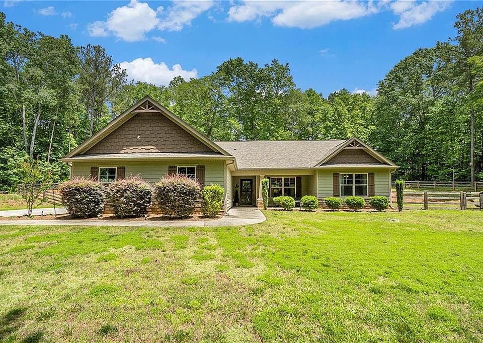 Look no more, this is it! Newnan living at its best. This is the most incredible Ranch home nestled in over 3 Acres of private wooded property, situated over 200 yards from the main road in a quiet cul-de-sac. This fantastic 4 bedroom home is only 5 years old with so many upgrades. The open floor plan is gorgeous with natural light and plenty of recess lightening. The home was built with so many upgraded features including hardwood floors, granite countertops in the kitchen, and a huge island for entertaining that seats at least 4. The tiled backsplash and stainless steel appliances create such an atmosphere of quality in craftsmanship. Enjoy the open floor plan including a spacious Kitchen and Eat-in area, a Family Room with a beautiful stone fireplace to the ceiling with a rough-hewn mantle, and cathedral ceilings. The separate dining gives additional space for get-togethers. Enjoy the split bedroom plan which includes the Main bedroom ensuite with hardwood ceilings, a beautiful tiled bath, with double marble vanity, including an oversized double tile shower. Ease outside into the backyard that is fenced in with total wooded privacy while enjoying the covered patio, Plenty of parking inside and outside of the two-car side entry garage. Schedule an appointment today, this home offers so much enjoying living and will not last long.