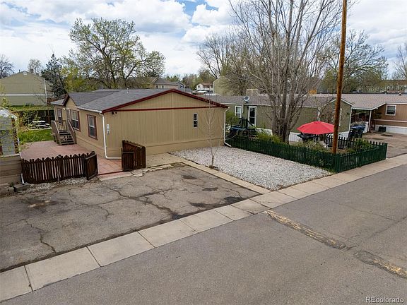 This ONE OF A KIND manufactured home located within the friendly Boulder Ridge Mobile Home Park, is extremely spacious and is perfectly placed to privately enjoy your sunny days & cozy evenings within its spacious lot. This home truthfully does have one of THE BEST LOTS IN THE PARK! Very large yard space within a fence friendly community allowing your furry friends to roam comfortably. Upon entering the home you will immediately notice the roomy living room connecting to a very charming kitchen. The kitchen consists of a center island allowing for more cupboard space, along with a spacious stainless steal sink, and a perfectly sized dining room to feed the family! Heading from the kitchen you will find a hallway that leads to both secondary bedrooms that ends with a nicely sized full bathroom allowing for easy access from both bedrooms. When returning from the hallway if you look directly across the living room next to the front door, there you will find the primary bedroom. The primary bedroom is perfectly sized and possesses it's own walk in closet along with a SURPRISINGLY SPACIOUS FULL BATHROOM that carries both a tub and a shower! This home being located in the adorable city of Lafayette, has prime location with many stores, schools, and local business all within a 5 minute drive! Boulder Ridge Mobile Home Park also offers community parking, club house event center, community pool, and a convenient playground park for all of its amazing residents! Imagine enjoying your favorite drink in the evening sitting in the back yard watching while the sun sets over the West! That could be you!