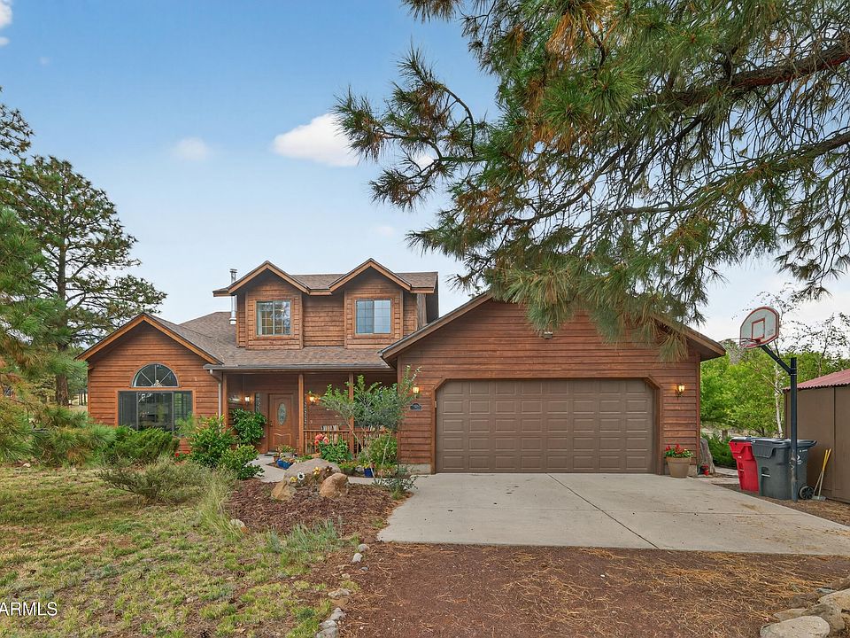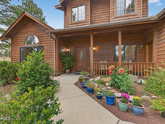 FABULOUS HORSE PROPERTY IN THE PINES with direct access to the Coconino National Forest. This beautiful home has 5 bedrooms, 3 1/2 baths with the primary suite on the main floor. A bonus music/office room is just off the entry. The 2 1/4 acre property features a 9 x 10 greenhouse, fenced gopher proof garden and a large fenced yard for the dogs. A/C plus new interior paint and new carpeting plus a high efficiency Blaze King wood stove with split and stacked wood make this home move-in ready for you and your family. A 2 stall barn with water, electricity and large turn out make this a perfect horse set-up. Saddle up and ride all the way to the Grand Canyon. The barn features a heated, insulated 19x23 workshop with a storage attic above. And a bonus-No HOA.