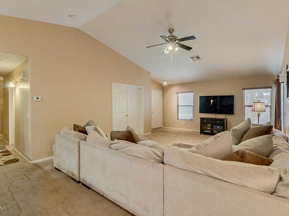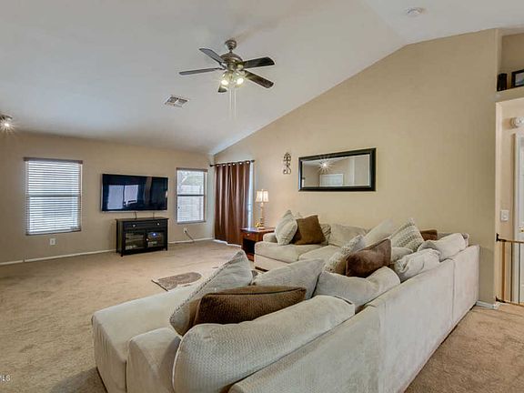 Welcome to the quiet community of Palm Meadows. Located minutes from freeways, shopping and the beautifulFriendship Park, this amazing neighborhood is the perfect place to call home. This 3 bed, 2 bath home feels like new with fresh paint andbrand new flooring throughout. Soaring vaulted ceilings make the great room feel spacious and bright. The open kitchen includes a breakfast bar, pantry and a cozy breakfast nook. Each perfect-sized bedroom includes a convenient ceiling fan ideal for AZ weather. The large master suite includes a full master bath complete with a luxurious vanity and walk-in closet. The backyard features a covered patio and low maintenance desert landscaping. Come take a look!!