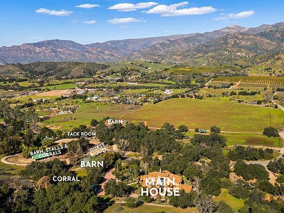 We welcome you to step back in time and savor the peace and solitude of casual yet refined ranch living. Approximately 1-1.5 hours from LA and an hour from Montecito, with uninterrupted views of the majestic mountains in all directions. You will find yourself one with the clouds, transfixed by the seasonally snow capped mountains or warmed by the sunlit scenery. With approx. 31+ acres of land the property hosts a 5,370 sf main house, guest house, covered parking for 14+ cars, two barns, corrals, stalls & tack rooms, a well, and 2 seasonal creeks. The main residence's fluid architectural design is a masterpiece designed by the acclaimed Marc Whitman showcasing floor to ceiling windows, coved ceilings, hand carved beams, wood ceilings, & an abundance of French doors allowing for indoor/outdoor living. Meander down to the 3,000 sf barn which is the perfect place to house your collection or explore a new hobby! Gentle rolling hills along with the wild hillside make this a rarity in the Ojai Valley. Sit back and soak in nature at its finest with soaring hawks & native vegetation. In the heart of the home is a courtyard enticing you to relax & savor life with a renewed sense of gratitude. This exceptional property embodies the essence of Ojai with unrivaled tranquility & natural beauty! The perfect sanctuary for your weekend getaway or full time living.