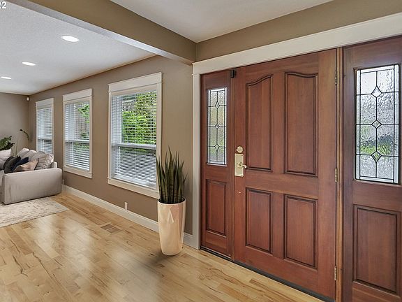 Beautiful Happy Valley home nestled in a park like setting. You'll find decorator paint colors, hardwood floors & many improvements throughout the house including updated bathrooms. Enjoy walls of windows & a spacious light & bright layout to include a bonus room w/ fireplace & built-ins, roomy bedrooms, formal dining & eating nook, great room & expanded living space extending to the outdoor Trex deck where you can relax, and enjoy the views & privacy of the protected adjacent common area.