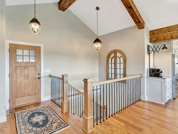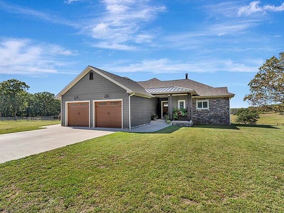 Set back from the road just off Highway 32, this property makes an immediate impression. A long, winding drive leads to a home positioned perfectly for privacy and sunsets every view from the main level or lower level captures the landscape in full.Built with exceptional quality, the home features exposed wood beams, a grand stone fireplace, and walls of windows that fill the space with natural light. The open floor plan connects the living, dining, and kitchen areas, creating a space that feels expansive, balanced, and refined.The primary suite includes his and hers baths and closets hers with a soaking tub and his with a walk-in shower. Every finish reflects thoughtful craftsmanship and solid construction from top to bottom.The lower level adds additional living space, bedrooms, and a workshop area, maintaining the same level of quality and detail as above.One of the standout features of the property is the horse barn a custom-built structure with a cypress exterior and cedar and fir finishes inside. It includes three stalls, a tack room that could double as a lounge, a half bath, and a loft for storage. It's exceptionally well done and adds tremendous appeal to the property.The acreage is fully fenced with a gentle roll, ready for livestock, offering a balanced mix of pasture and timber with a pond and automatic waterer.Located less than ten minutes from Stockton Lake, this property delivers on every level privacy, craftsmanship, and design that set it apart from anything else on the market.